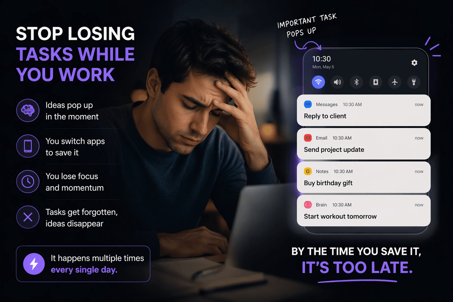 Throughout the day, ideas, reminders, and small tasks come to mind while you’re focused on something important, but capturing them isn’t as simple as it should be, because it usually means switching apps, breaking your concentration, and losing the flow you were in, and in many cases, by the time you try to save it or return to your work, the task is forgotten, delayed, or no longer feels as clear as it did in that moment, which slowly affects your productivity more than you realize.