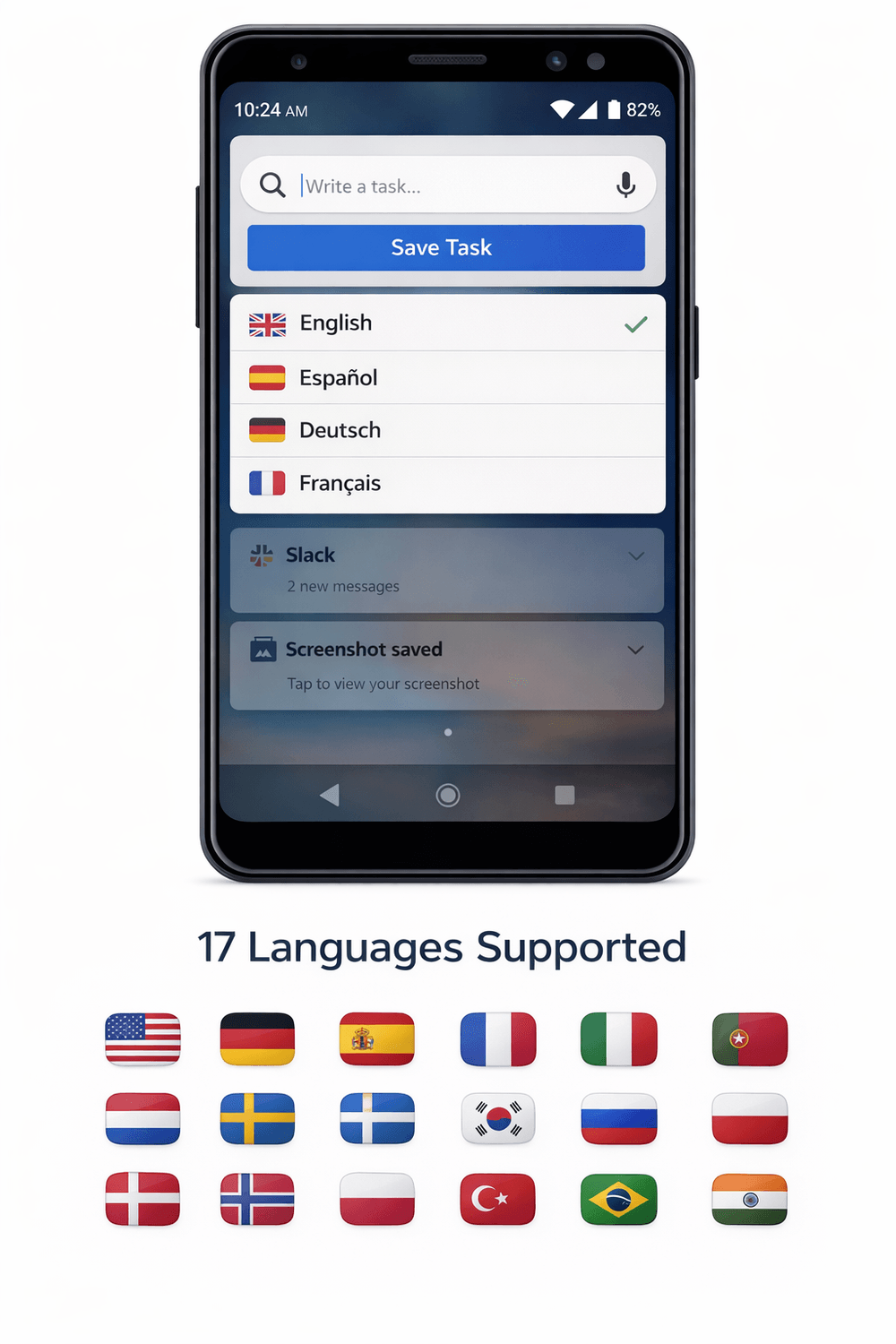 17 Languages Supported Use SnapTask in your preferred language