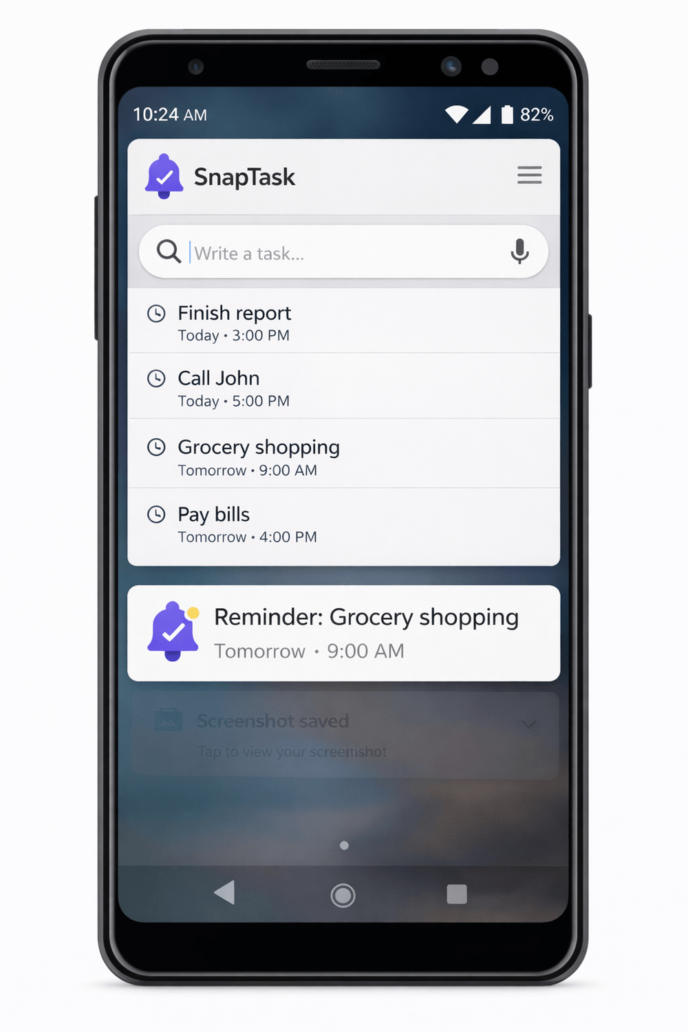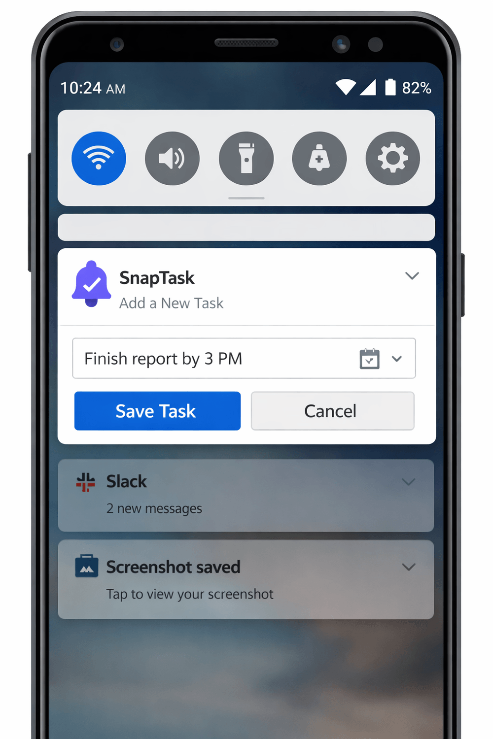 SnapTask lets you capture tasks instantly from your notification bar — without opening any app.