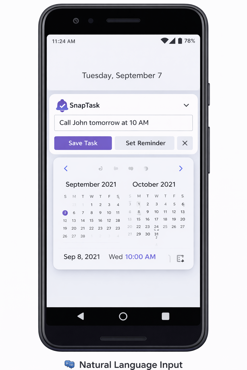 Type “Meeting tomorrow at 9" SnapTask understands